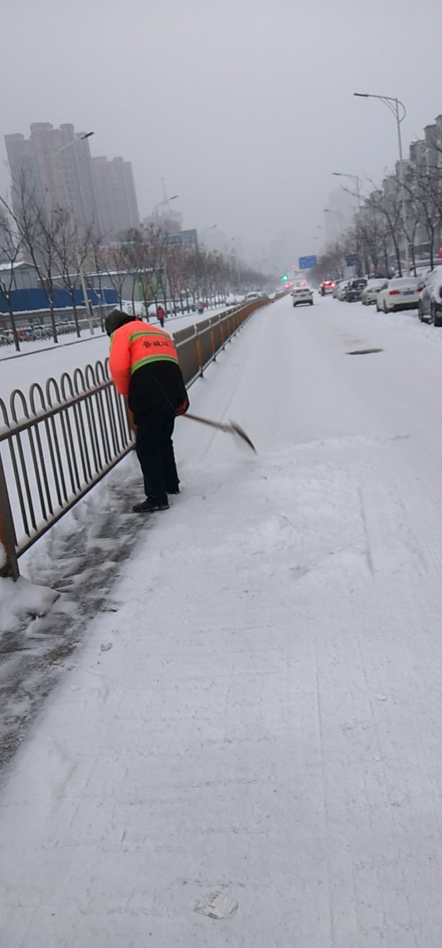 新年的第一場大雪,到處銀裝素裹,扮美了整個晉城,但大雪帶來美景的同時,也給大家的出行帶來了不便。為保障大雪期間出行安全,潔霸公司各保潔點的負(fù)責(zé)人積極組織員工進(jìn)行主干道積雪清掃,在除雪過程中,雖然天氣寒冷,但大家除雪的熱情卻不減,大家有的撒融雪劑,有的 清掃積雪,有的用鏟子除冰,奏響鏟雪破冰進(jìn)行曲。