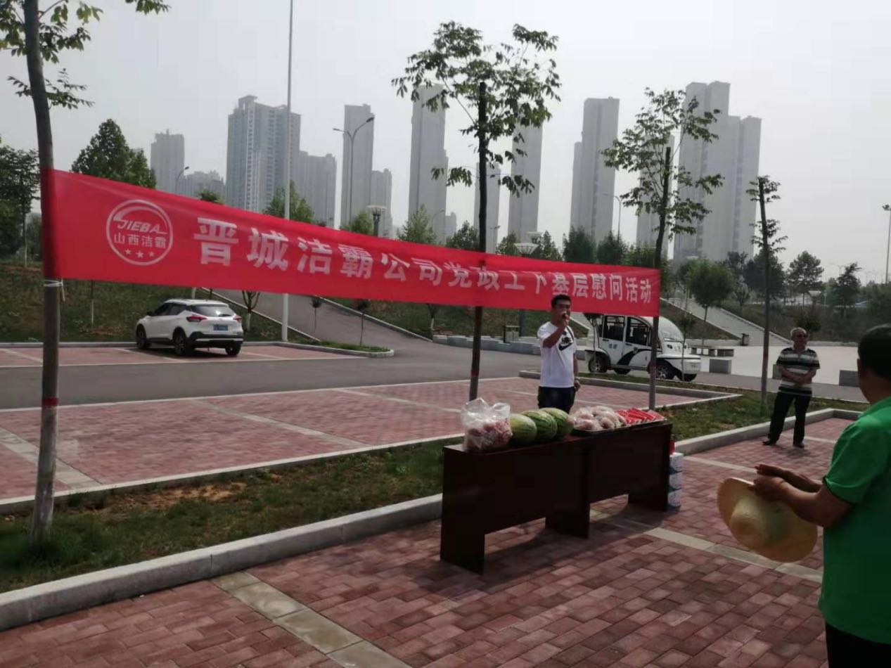 暑期盛夏,赤日炎炎7月19日上午,晉城潔霸公司黨政工暑期“情系一線”下基層慰問系列活動啟動。在工會主席崔偉同志率領(lǐng)下,慰問活動小組首站來到了晉城市帶狀公園,看望了辛勤奮戰(zhàn)在園林一線的員工,給員工送去了面包、西瓜、白糖等慰問品,表達(dá)了公司領(lǐng)導(dǎo)的親切關(guān)懷。