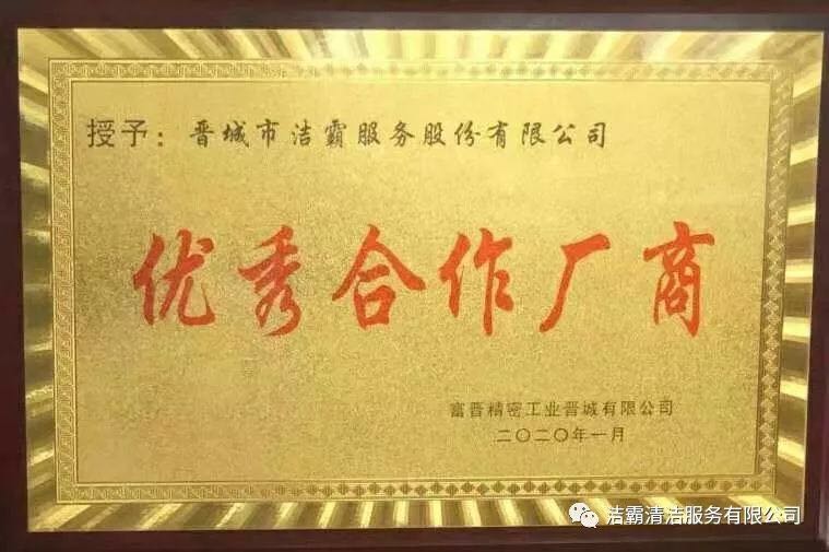 1月21日,富士康(晉城)科技工業(yè)園區(qū)召開2019年綠化環(huán)衛(wèi)服務(wù)廠商表彰大會(huì)。會(huì)上,我公司喜獲“優(yōu)秀合作廠商”稱號。