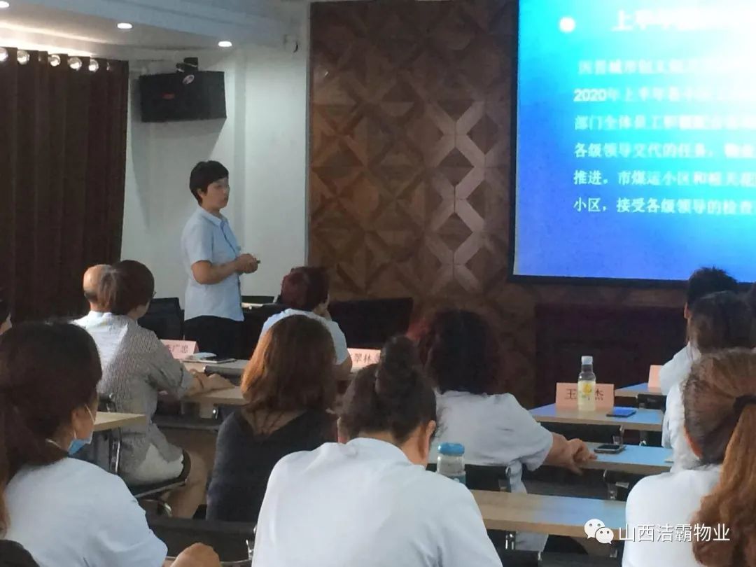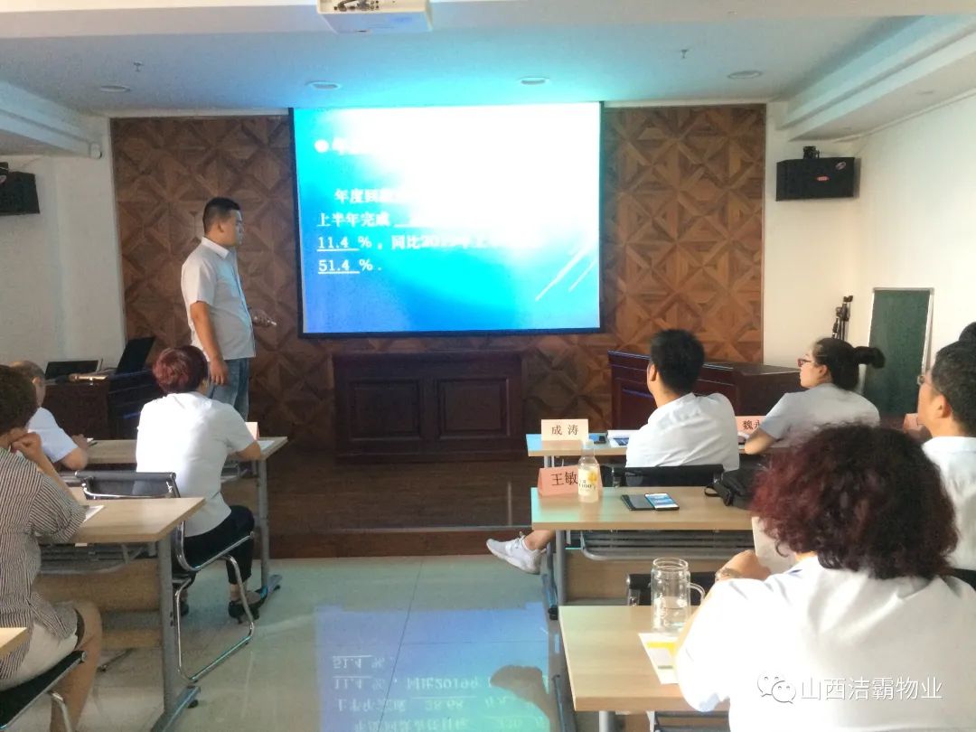 會上,公司保潔部經(jīng)理魏永梅、工程部經(jīng)理張翠林、山西百潔物業(yè)服務(wù)有限公司經(jīng)理閆秋麗、山西潔霸物業(yè)管理有限公司經(jīng)理李廣忠、晉城市合眾力勞務(wù)派遣有限公司經(jīng)理成濤、富士康項目部經(jīng)理王敏杰等分別就2020年上半年的經(jīng)營指標(biāo)完成情況作了詳細的匯報,并對比目標(biāo)找出了差距和根本原因,提出了下半年的經(jīng)營目標(biāo)及保障年度目標(biāo)實現(xiàn)的措施。