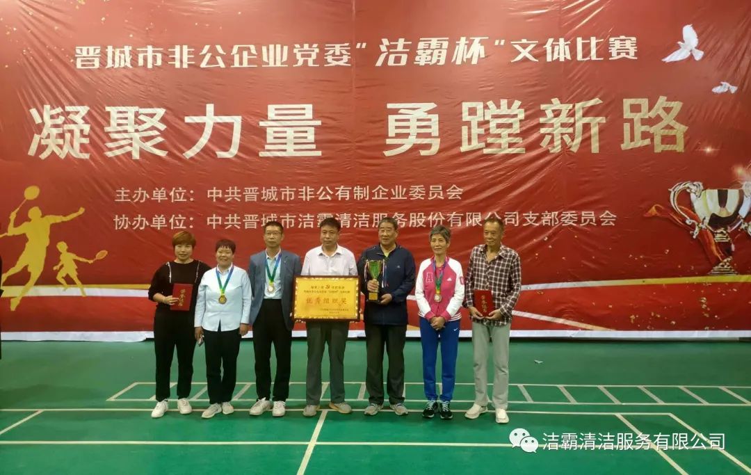 9月25日下午,晉城市非公企業(yè)黨委“潔霸杯”文體比賽落下帷幕。此次比賽由中共晉城市非公有制企業(yè)委員會主辦,中共晉城市潔霸清潔服務股份有限公司支部委員會冠名協(xié)辦。此次活動的主題是“凝聚力量 勇蹚新路”,旨在新中國成立71周年之際,全面展示非公企業(yè)黨組織開展群眾性體育活動的豐碩成果,以及廣大黨員干部創(chuàng)先爭優(yōu),奮發(fā)進取,勇蹚新路,爭做時代先鋒的精神風貌。