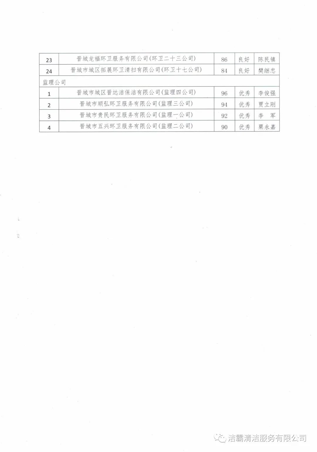 2020年10月28日—10月30日,晉城市城區(qū)市容環(huán)衛(wèi)中心由中心督查室牽頭組織,中心班子成員分別帶隊,機關全體人員參加,對各作業(yè)公司道路清掃路段、垃圾收集站(點)和公廁采用交叉檢查和隨機抽查的方式對24個作業(yè)公司的環(huán)境衛(wèi)生作業(yè)質(zhì)量和4個監(jiān)理公司的日常檢查情況進行了考核。晉城市潔霸清潔服務股份有限公司所屬的環(huán)衛(wèi)四公司分數(shù)最高,名列第一。