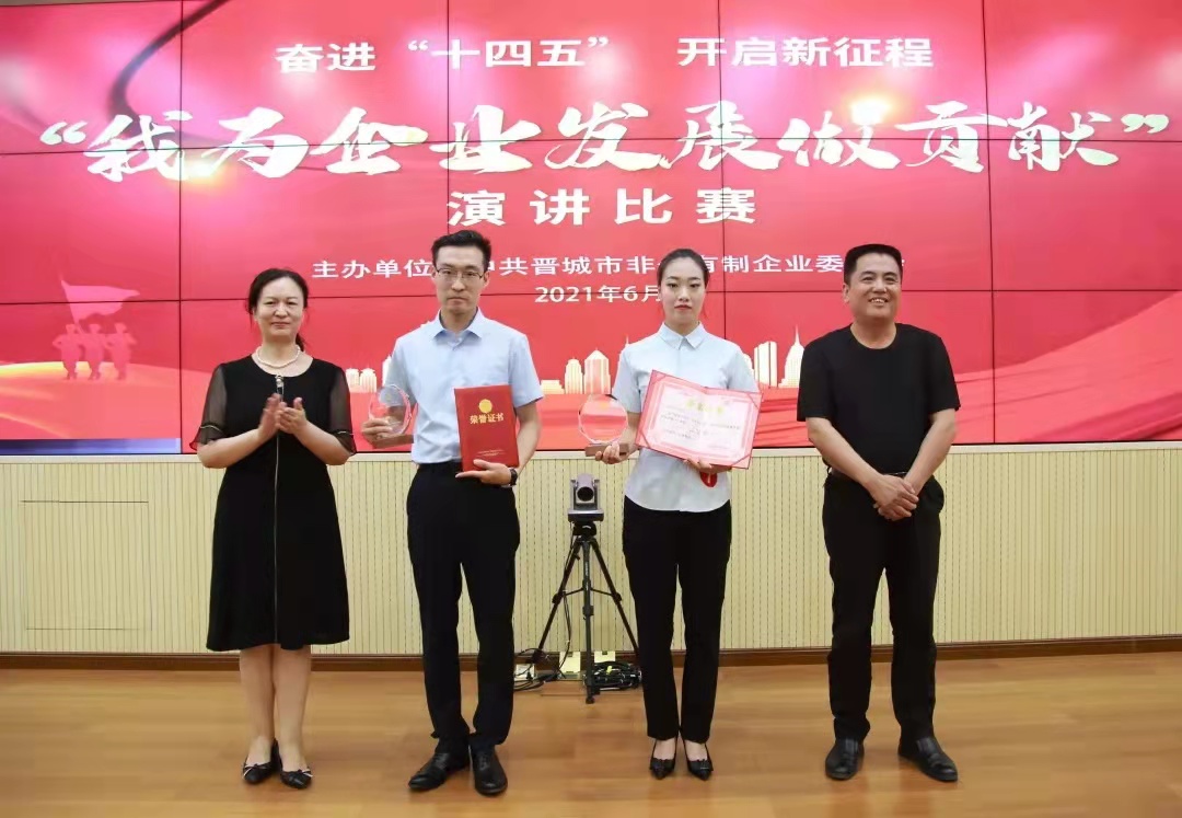 62日下午,晉城市非公企業(yè)黨委奮進(jìn)十四五·開啟新征程 我為企業(yè)發(fā)展做貢獻(xiàn)主題演講比賽決賽在市市場(chǎng)監(jiān)督管理局6樓視頻會(huì)議室成功舉行。我公司選手薛李琴在決賽中榮獲二等獎(jiǎng)。