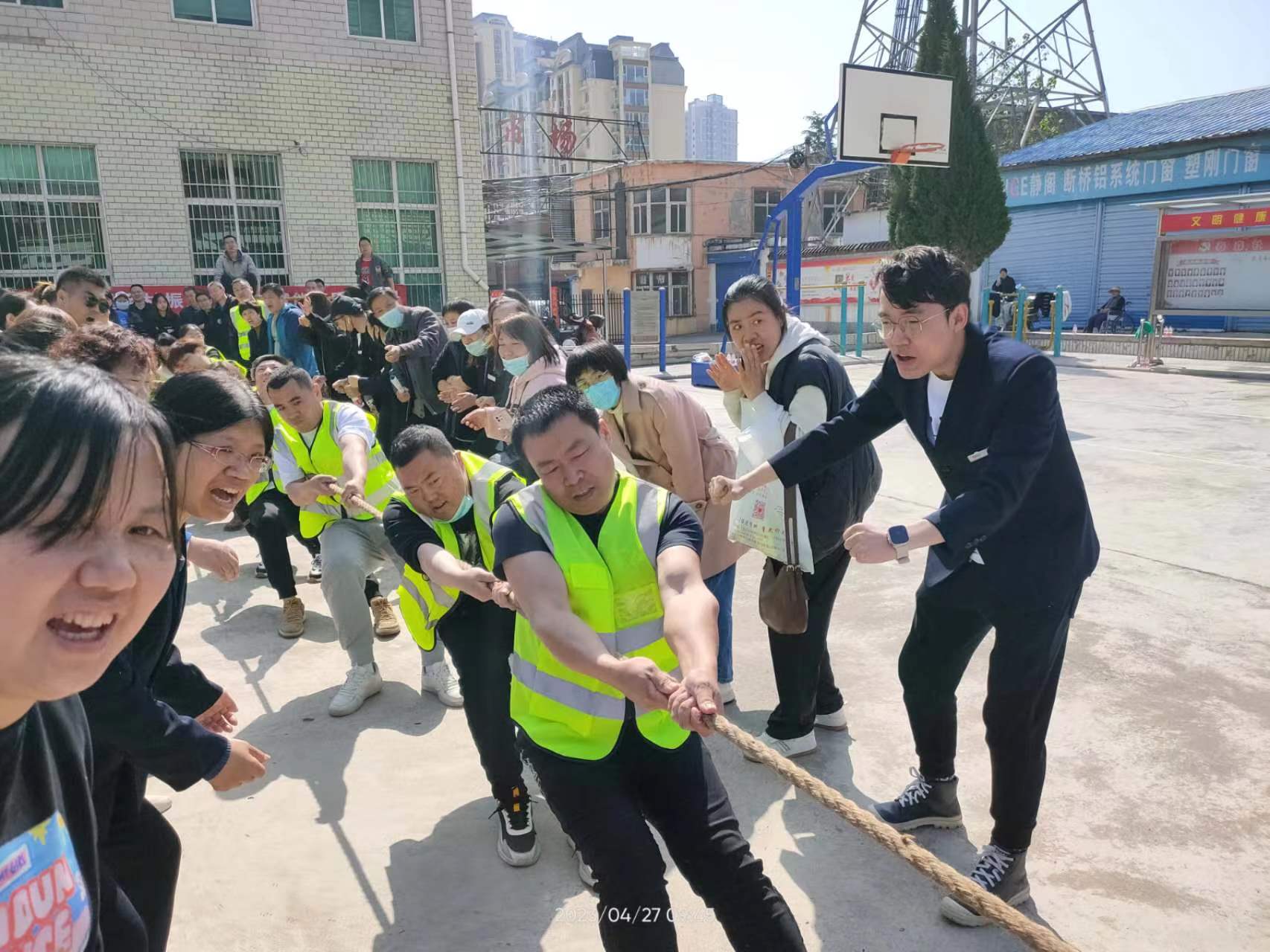 為了慶!拔逡弧眹H勞動節(jié),營造良好的節(jié)日氛圍,4月27日上午,泰森社區(qū)駐地單位慶五一“潔霸杯”拔河聯(lián)誼賽在泰森廣場舉行。