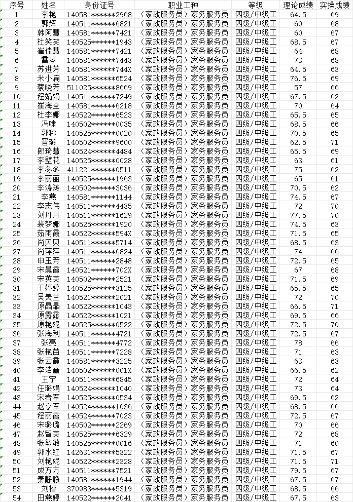 2024年1月27日上午第5批家政服務(wù)員中級認定人員成績公示
