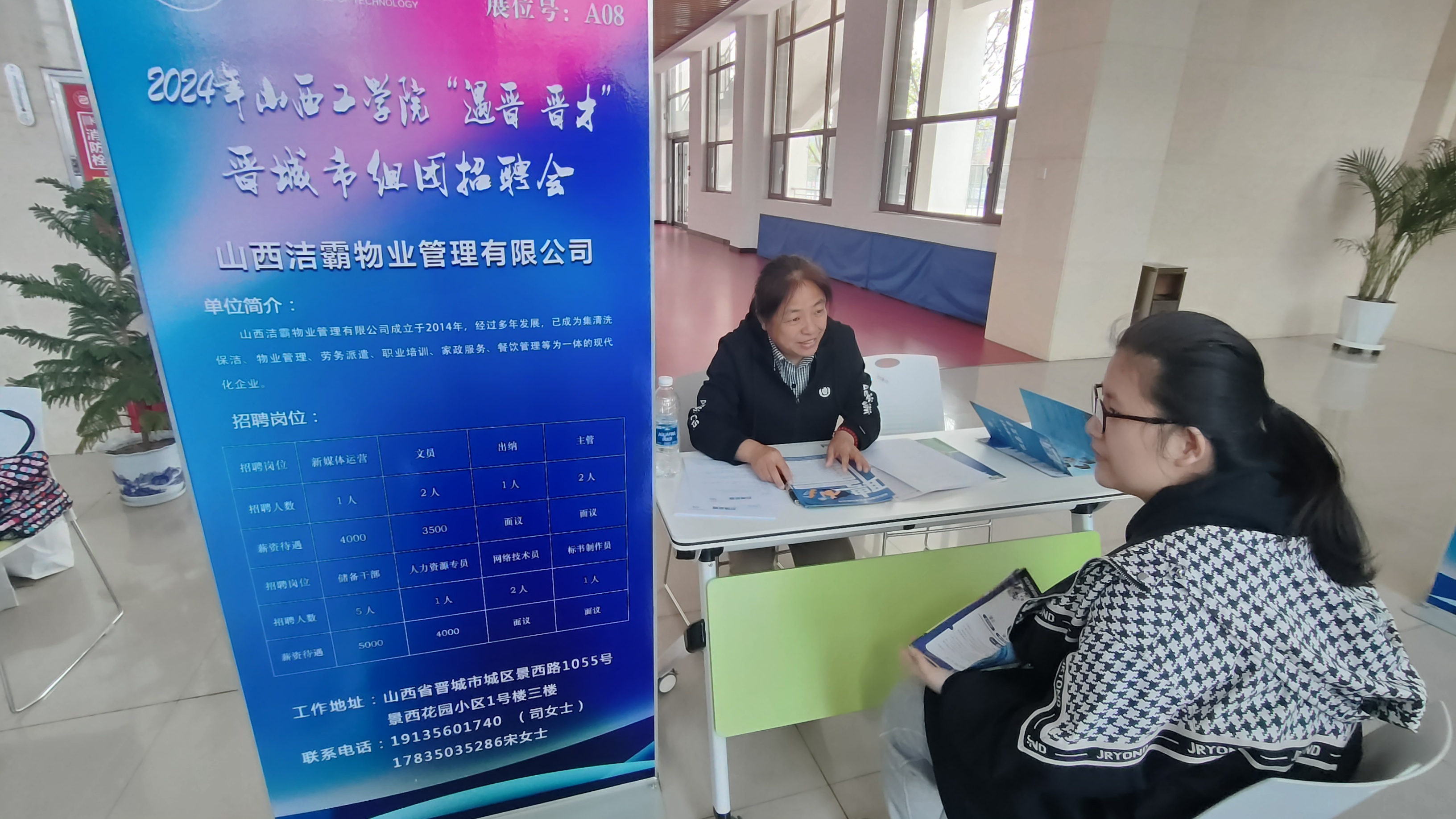 為搭建優(yōu)質(zhì)供需對接平臺,拓寬人才招聘渠道,為用人單位按需精準引進人才,4月25日,晉城市城區(qū)人社局組織10余家重點企業(yè)赴大同、朔州在大同大學、山西工學院開展“百城千校萬企”促就業(yè)山西行動,潔霸公司作為城區(qū)民營企業(yè)的代表積極參加了此次活動。