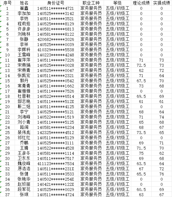 2024721日第24批家政服務(wù)員初級(jí)認(rèn)定人員成績(jī)公示