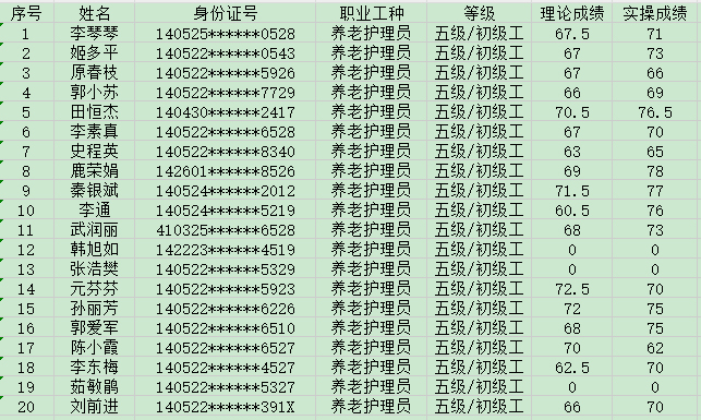 2024年10月14日第42批養(yǎng)老護(hù)理員初級認(rèn)定人員成績公示